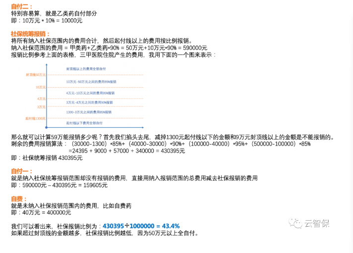 我们还是用上面的例子,其实“二次报销”只是对自付的金额进行报销: